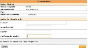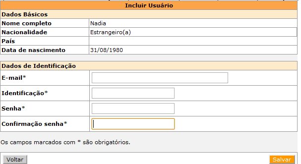 4) Fill out the field “Dados de Identificação”: Email address; Username; Password; Confirm your password